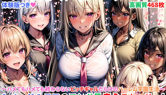 エロ同人|ハーレムギャル学園〜ハメてもハメても終わらないビッチギャル女子校生だらけのハーレム学園中出し生活〜【1ぺージ1コマのマンガ風完全ストーリー】